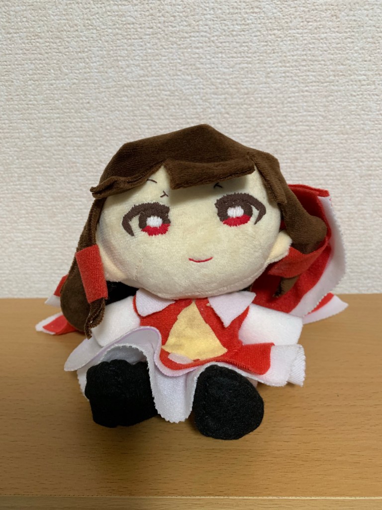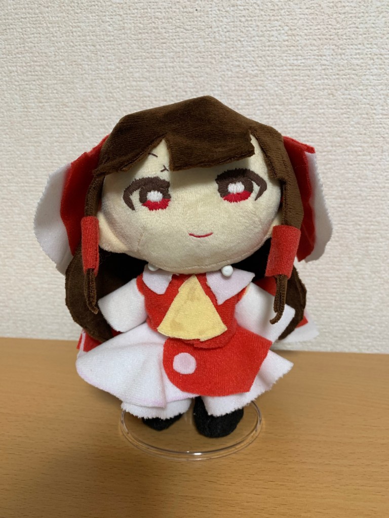 この霊夢さんのぬいぐるみ、諸事情(発注ミスとも言える)で作ったんですけど我ながら可愛くできたな。と……